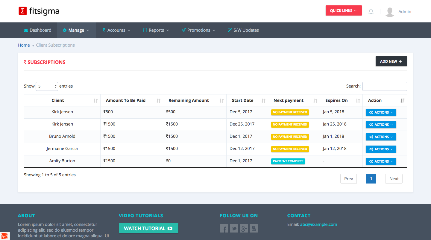 Fitsigma is a gym management software written in Laravel - 5.4 (PHP Framework) which is designed for gym owners to assist them to manage their business.