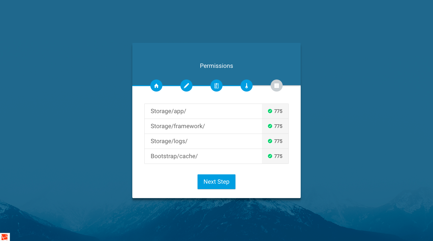 After successfully enabling and installing all required PHP extensions, next step is to set the appropriate permissions for some system folders. All directories listed on step 4 has to be writable by the application, as it is displayed on the following picture.